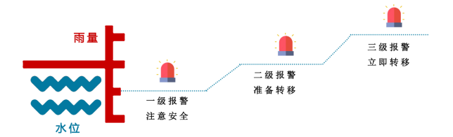 智能预警系统包括降雨量的预警、自动水位的预警、视频监控AI预警和声光电预警预报四部分,当降雨量或水位监达到阈值时,现场预警设备(声光报警器、语音大喇叭、LED情报屏)及时展示播报,远程通过智能预警设备发送预警信息到用户手机。