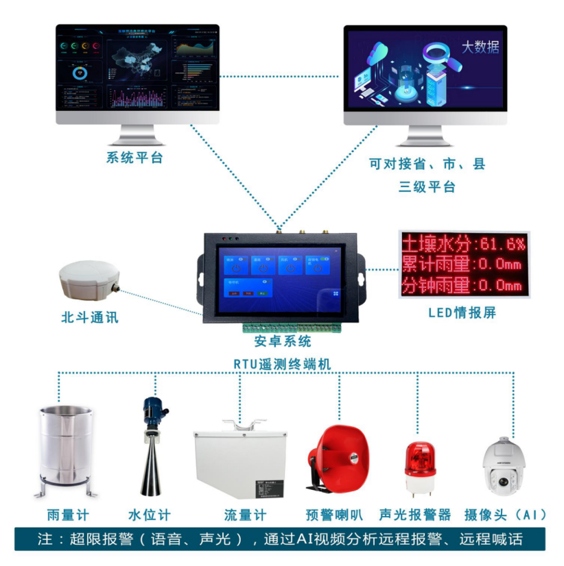 1)实现对雨水情信息进行实时性采集,以及水位和雨量报警通知,保障系统信息的高效性、及时性、准确性、充分性。